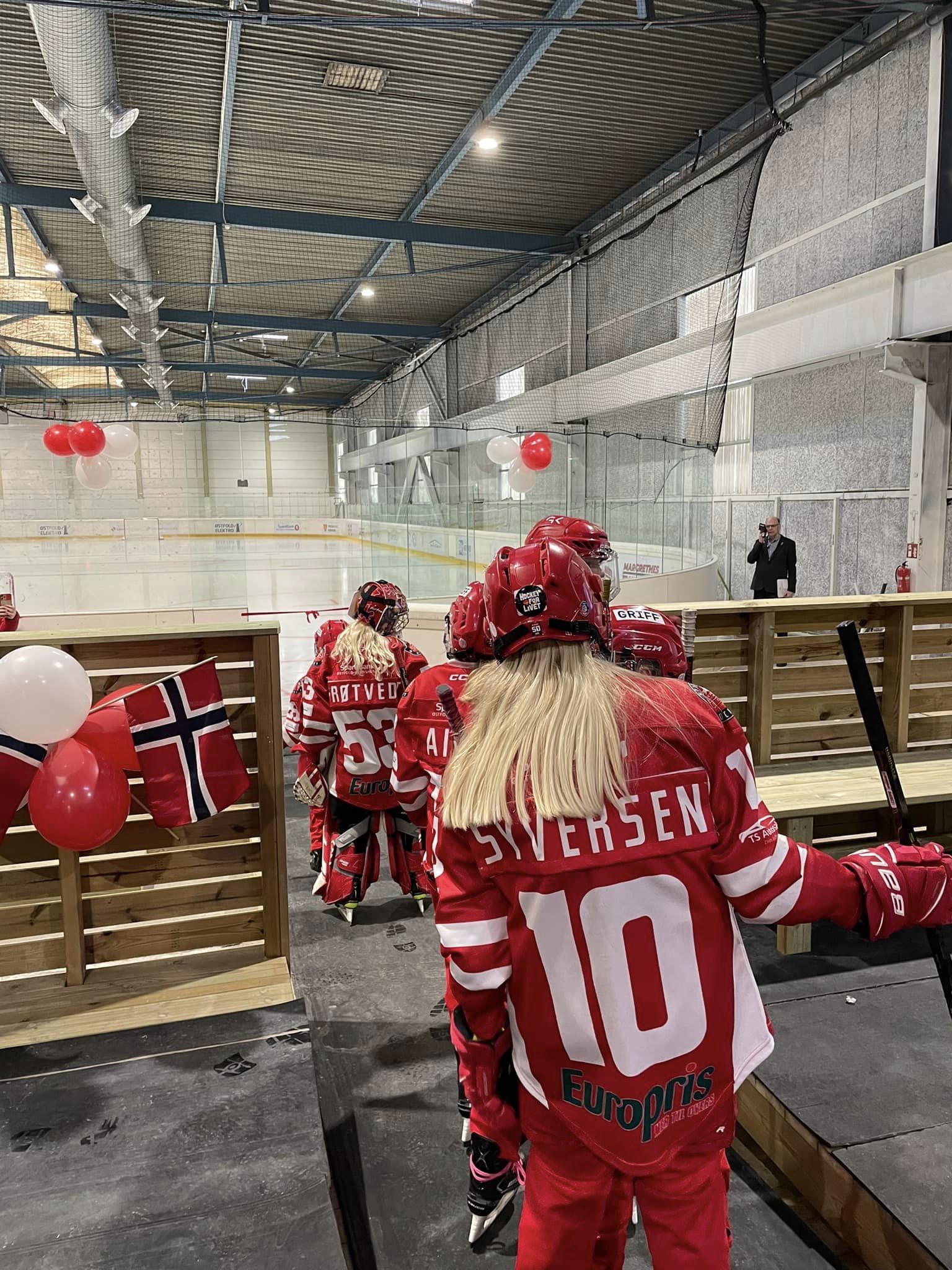 Det var klubbens nye jentelag som gikk æren av å åpne den nye isbanen. Klokken 1830 gikk de som første lag på isen – og gjennomførte den aller første treningsøkten på den nye isbanen.