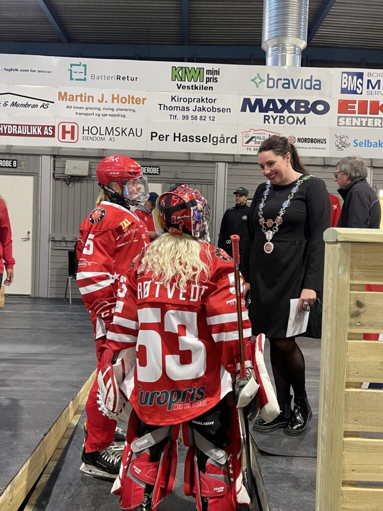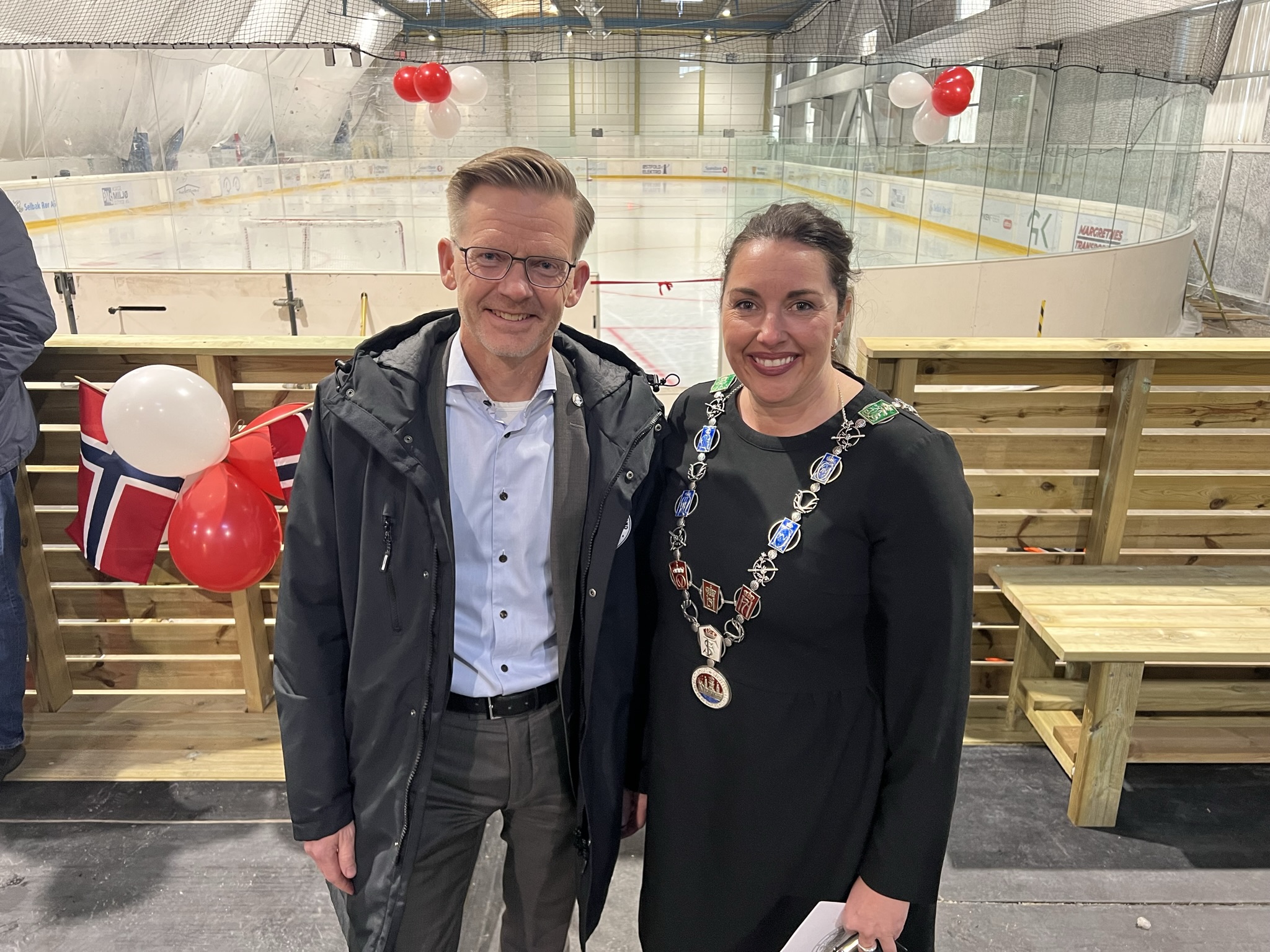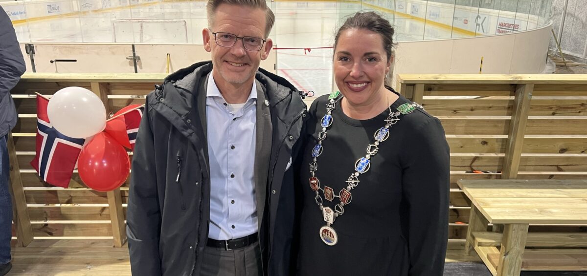 Hovedbilde: Ishcokeypresident Tage Pettersen og ordfører Siri Martinsen.