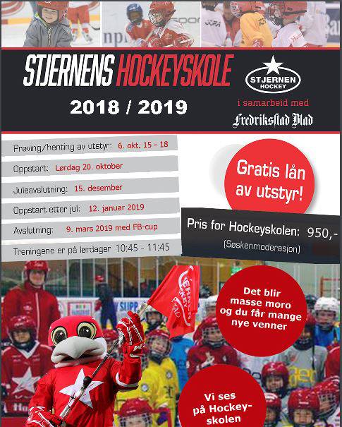 Da er det klart for påmelding til sesongens ishockeyskole. Vi starter opp lørdag 20 oktober fra klokka 1045-1145. For de av dere som trenger å låne utstyr kan dette hentes/prøves ut i Stjernehallen søndag 6 oktober fra klokka 1500-1800. Håper å se dere i Stjernehallen til årets vakreste eventyr på isen.