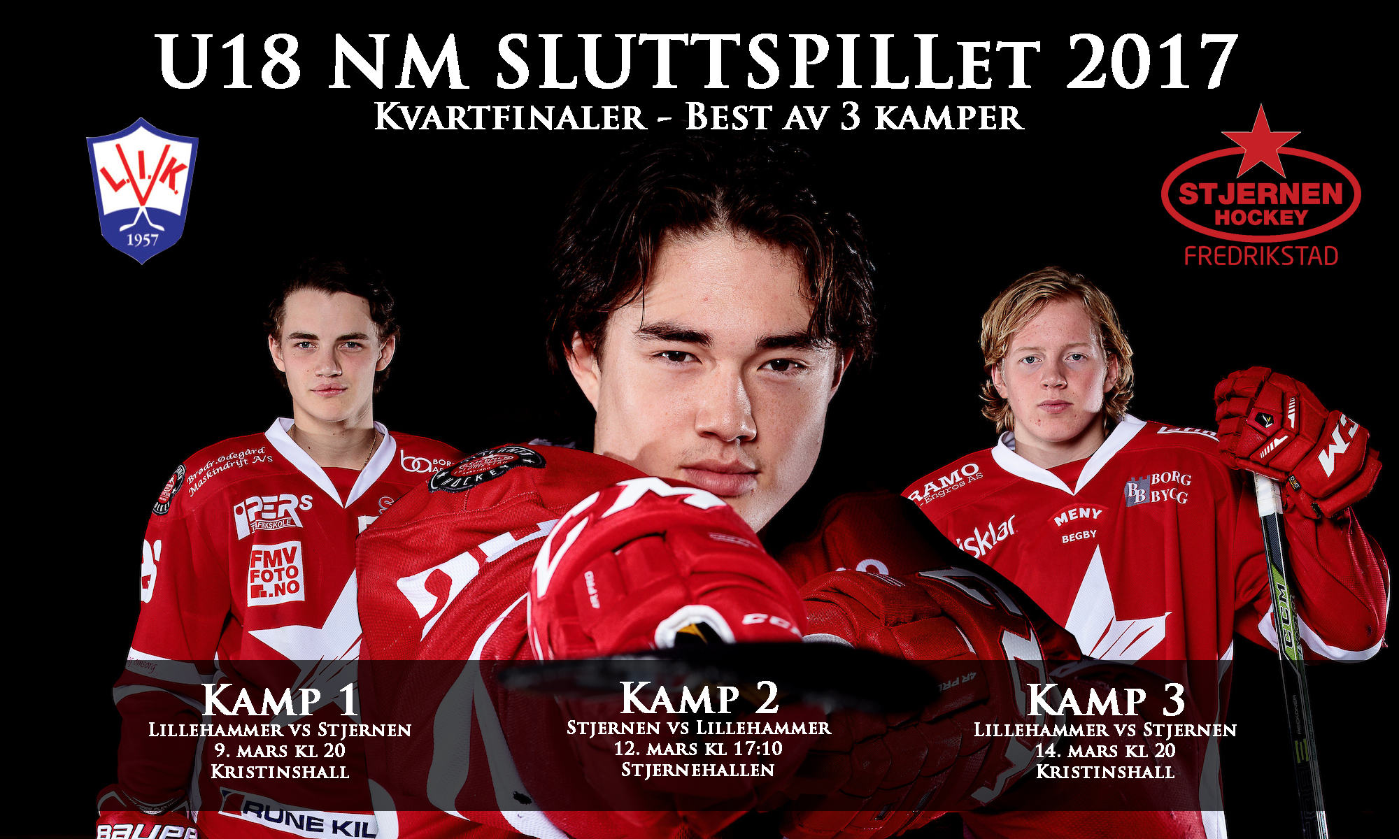 I dag starter U18 NM-sluttspill. Stjernen-gutta skal i kvartfinalen møte Lillehammer i en best-av-tre-kamper serie. Første kamp spilles på Lillehammer i dag og gutta setter seg på bussen til Lillehammer kl 14:30.