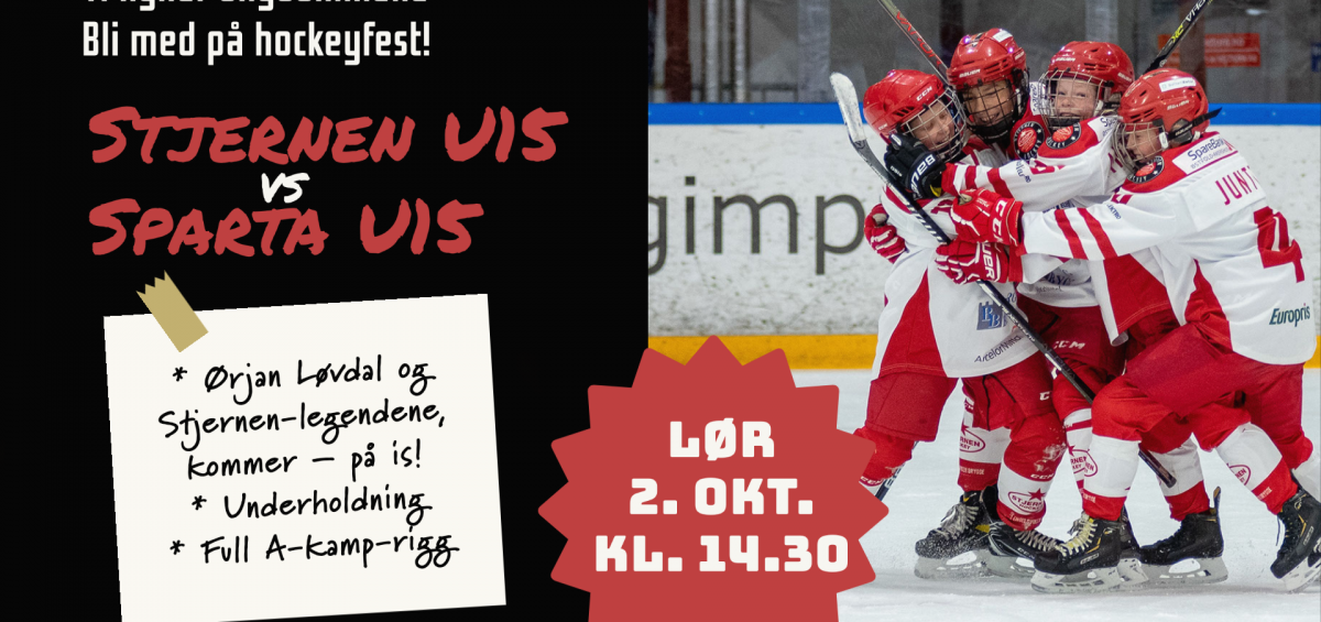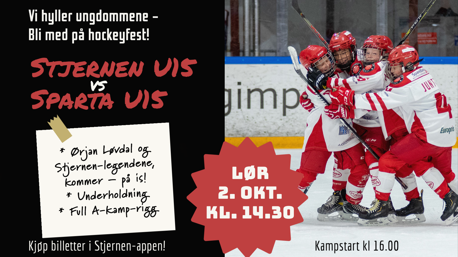 Uten barn og unge, ingen A-lagsidrett. Nå skal vi fylle Stjernehallen for å se toppoppgjøret i U15 Stjernen vs Sparta. Opplev gamle Srtjernen-legender på is igjen – og mye, mye mer. Hold av datoen: Lørdag 2. oktober.